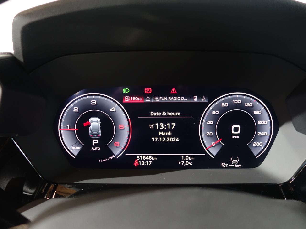 2 prises USB à l'arrièreAirbags latéraux à l'avant, avec airbags de têteAttelageAttelage de remorqueDispositif d'attelage pivotant mécaniquement et déclenchable électriquementDispositif d'attelage retractableDispositif d‘attelage escamotable à déverrouillage électriqueAppel d’urgence Audi connectApplications décoratives en aluminium spectre foncéAudi connect Appel d’urgence & ServiceAudi Drive SelectAudi Park AssistAudi pre sense frontAudi smartphone interfaceAudi sound system : 10 haut-parleurs incluant un haut-parleur central et un subwoofer ; amplificateur à 6 canaux avec une puissance totale de 180 wattsAudi virtual cockpit : combiné d'instruments entièrement numérique de 10,25"Banquette arrière rabattable 40/60Ciel de pavillon en tissu noirClé à fréquence radio (sans safelock)Climatisation automatique confort 2 zonesCommande de désactivation d'airbag passager avantContrôle de la pression des pneumatiquesDétecteur de pluie et allumage automatique des projecteursDirection assistée électromécanique asservie à la vitesseEcrous antivolI-Size et Top Tether pour les sièges arrière extérieursInterface BluetoothKit anticrevaison (compresseur et produit de colmatage)Limiteur de vitesseMMI navigation plus avec MMI touchOutillage de bordPack Eclairage intérieurPack Extérieur S linePack Intérieur S linePare-brise avec isolation acoustiquePeinture verniePhares à LED avec clignotants dynamiques à l’arrièreRappel de ceinture de sécurité avec dispositif arrière de détection d’occupation du siègeRéception radio numérique (DAB)Régulateur de vitesseRétroviseur intérieur à position nuit automatique, sans encadrementRétroviseurs extérieurs couleur carrosserieRétroviseurs extérieurs réglables, dégivrants, rabattables électriquement avec fonction rabat automatique (côté passager avant, marche arrière enclenchée) et fonction jour/nuit automatique des deux côtésSécurité enfant électriqueSièges avant réglables manuellementTrousse de secours, triangle de présignalisation et 2 vestes de sécuritéVolant 3 branches multifonctions plus en cuir et palettes de changement de vitesses