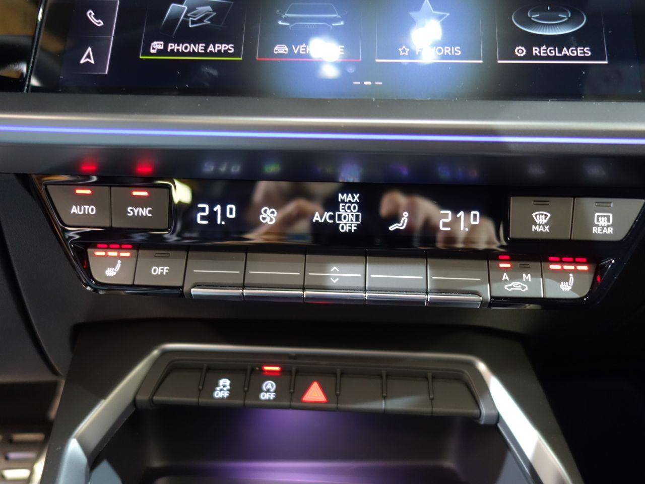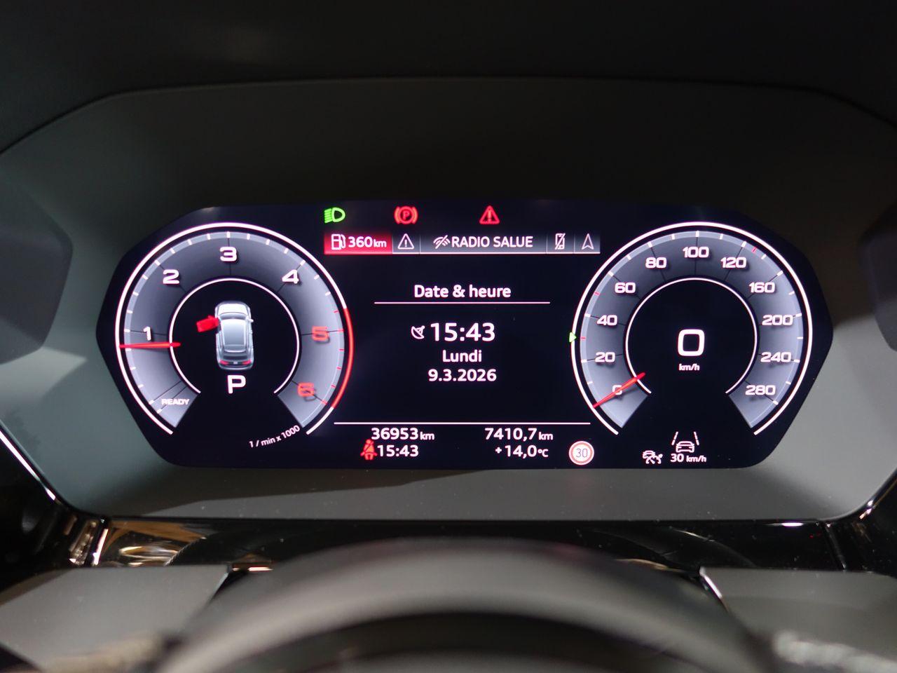 2 prises USB à l'arrièreAirbags latéraux à l'avant, avec airbags de têteAppel d’urgence Audi connectApplications décoratives en aluminium spectre foncéAudi connect Appel d’urgence & ServiceAudi Drive SelectAudi Park AssistAudi pre sense frontAudi smartphone interfaceAudi virtual cockpit : combiné d'instruments entièrement numérique de 10,25"Avertissement de sortie de voieBanquette arrière rabattable 40/60Ciel de pavillon en tissu noirClé à fréquence radio (sans safelock)Climatisation automatique confort 2 zonesCommande de désactivation d'airbag passager avantContrôle de la pression des pneumatiquesDétecteur de pluie et allumage automatique des projecteursDirection assistée électromécanique asservie à la vitesseEcrous antivolI-Size et Top Tether pour les sièges arrière extérieursInterface BluetoothJantes en alliage léger, 5 branches en Y, Gris Graphite, tournées brillantes, dimension 8,0J x 18 avec pneus 225/40 R18Kit anticrevaison (compresseur et produit de colmatage)Limiteur de vitesseMMI navigation plus avec MMI touchOutillage de bordPack Eclairage intérieurPack Extérieur S linePack Intérieur S linePare-brise avec isolation acoustiquePeinture verniePhares à LED avec clignotants dynamiques à l’arrièreRappel de ceinture de sécurité avec dispositif arrière de détection d’occupation du siègeRéception radio numérique (DAB)Régulateur de vitesseRétroviseur intérieur à position nuit automatique, sans encadrementRétroviseurs extérieurs couleur carrosserieRétroviseurs extérieurs réglables, dégivrants, rabattables électriquement avec fonction rabat automatique (côté passager avant, marche arrière enclenchée) et fonction jour/nuit automatique des deux côtésSécurité enfant électriqueSièges avant réglables manuellementTrousse de secours, triangle de présignalisation et 2 vestes de sécuritéVolant 3 branches multifonctions plus en cuir et palettes de changement de vitesses
