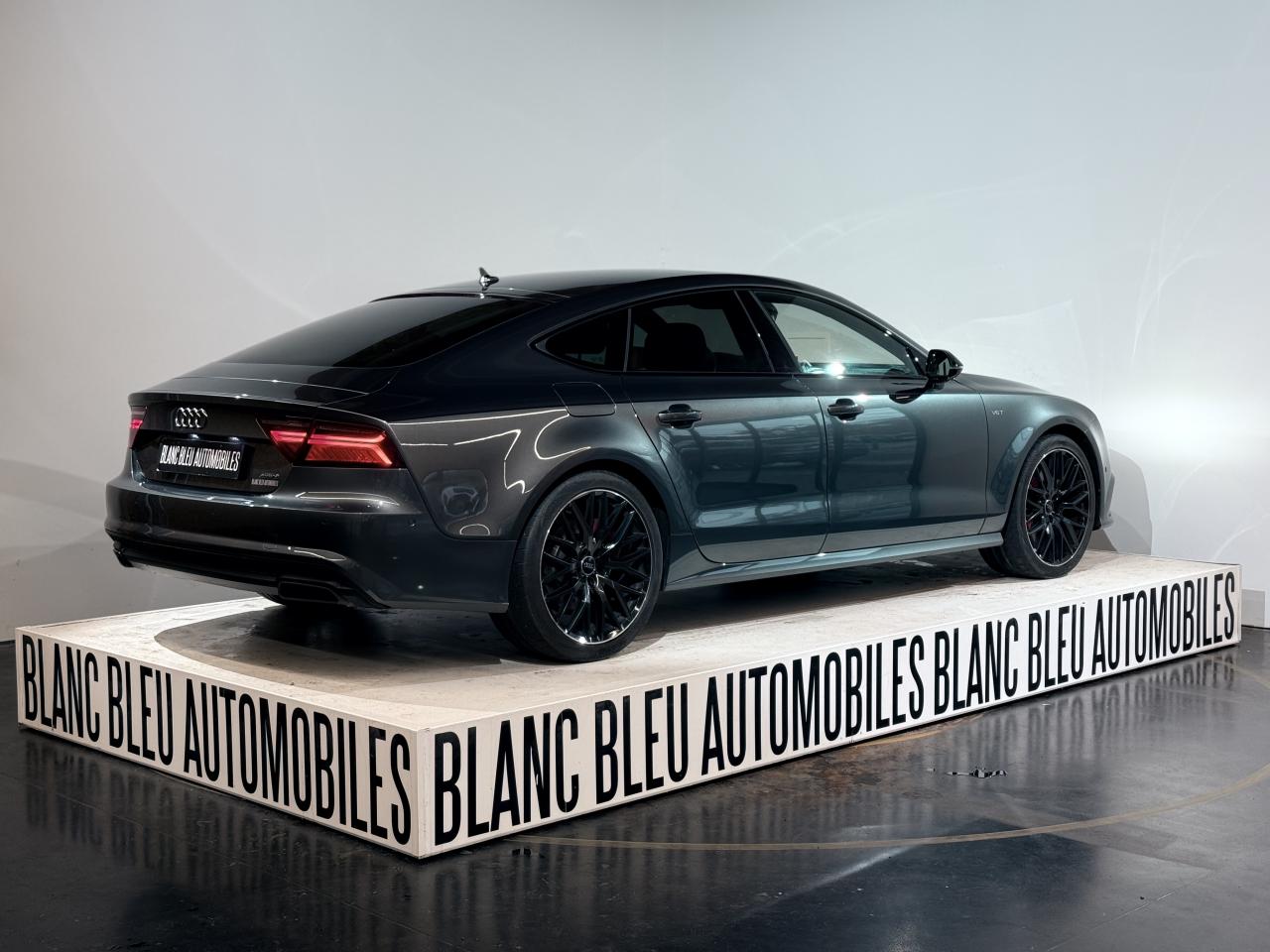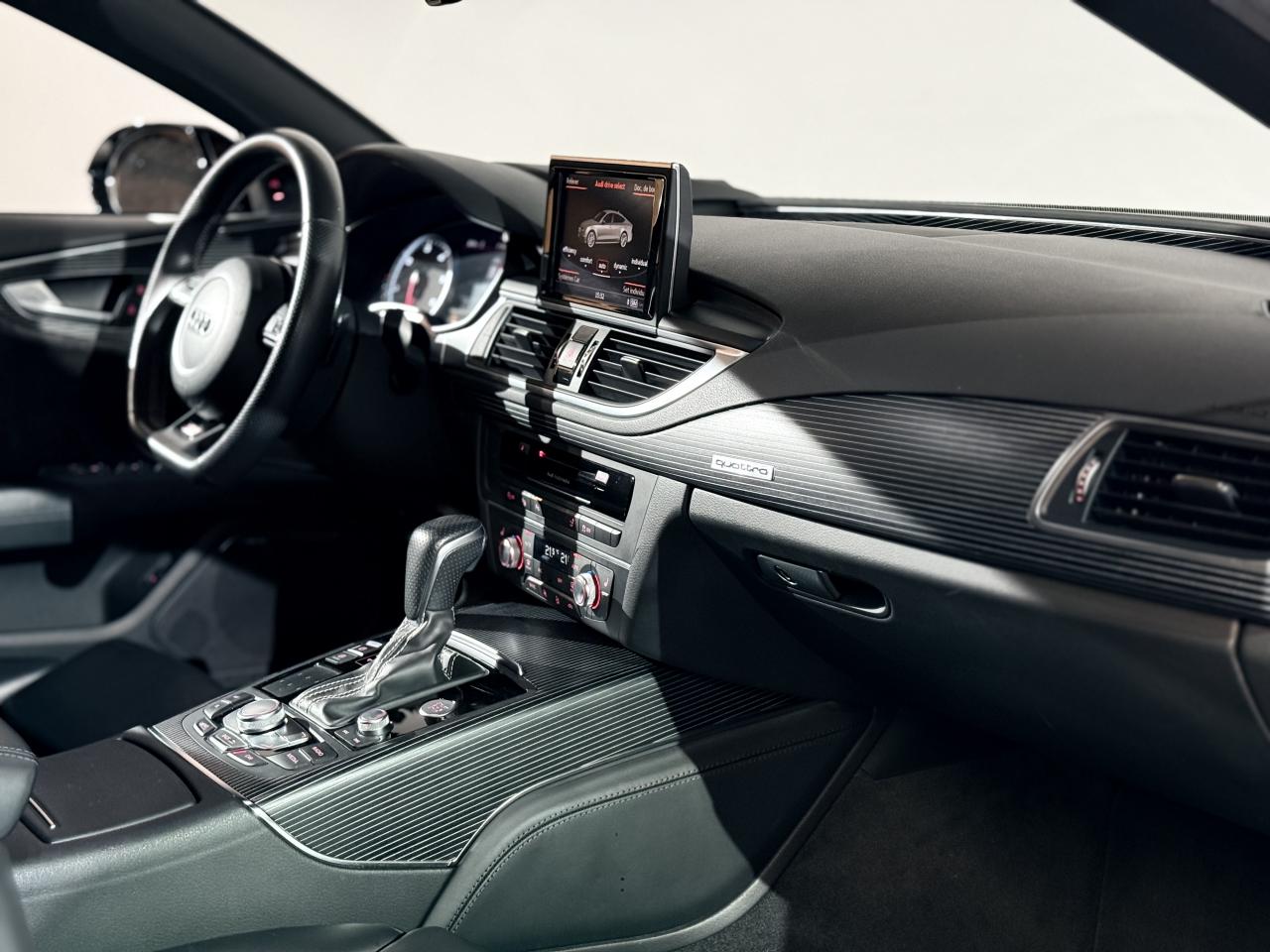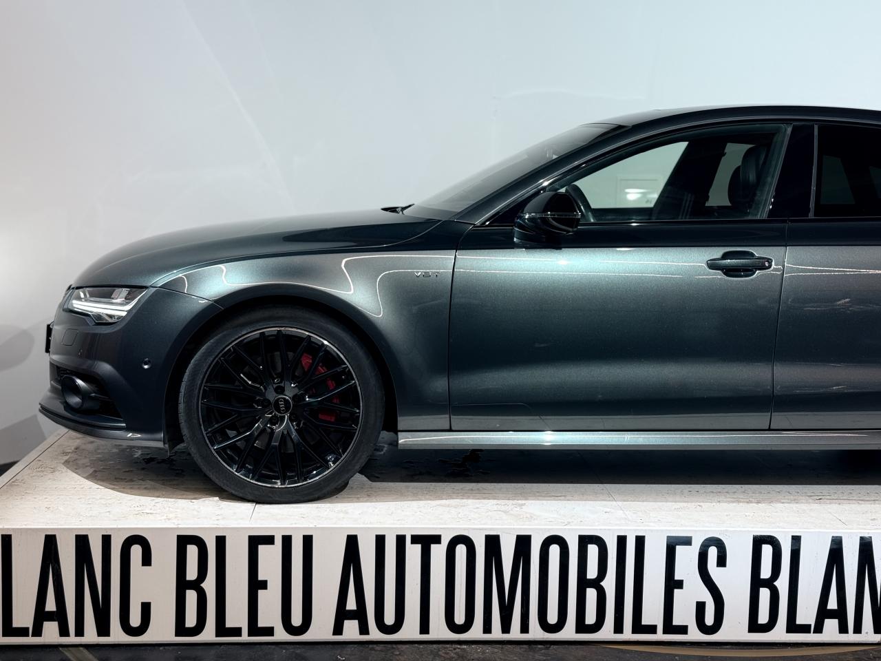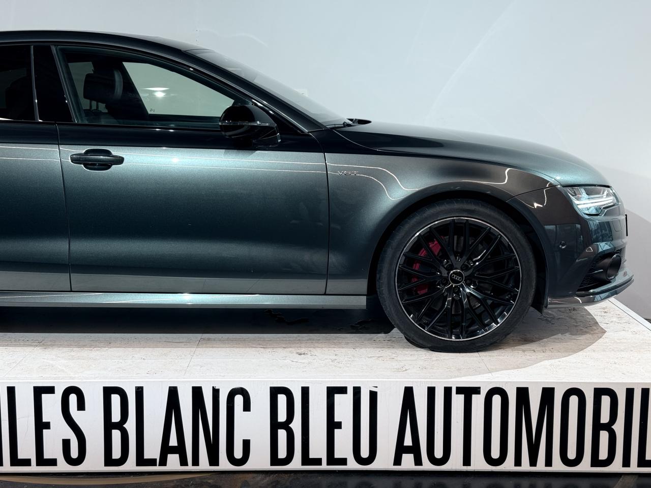 ABS (antiblocage de roue) avec répartiteur de freinage EBV et assistance hydraulique au freinage d'urgenceAccoudoir central avant en cuirAccoudoir central avant pour conducteur et passager avant, avec 2 porte-boissons intégrésAirbags conducteur et passagerAirbags frontaux conducteur et passager grand volume, à deux niveaux de gonflement suivant la gravité du choc, latéraux avant et arrière intégrés aux dossiers des siègesApplications aluminium autour des diffuseurs d'air, de l'écran MMI, sur la commande du frein de stationnement électromécanique et les lève-vitresApplications décoratives en bois noir (Chêne Beaufort) avec inserts en aluminiumAppuie-tête avant et arrièreASR (antipatinage) pour une motricité et une rigidité transversale optimales. Réduit le patinage des roues motricesAudi Drive Select avec mode «efficiency»Audi Hold Assist, maintient le véhicule à l'arrêt, aussi bien en côte qu'en descente, sans limite de tempsAudi Music InterfaceAudi Park AssistAudi Parking System Plus avant et arrièreAudi pre senseAudi sound system : amplificateurs à 6 canaux, 10 haut-parleurs dont un central dans le tableau de bord et subwoofer dans le coffre.Puissance totale 180 WBanquette arrière : trois places, rabattable 40/60Becquet arrière asservi à la vitesseBoîte à gants grand volume, éclairée et verrouillableCapacité du réservoir : 73 litresCarrosserie hybride en aluminium (capot moteur, hayon, portières et ailes)Ceintures de sécurité trois points à enrouleur à toutes les places avec prétensionneur réversible, limiteur de tension et réglage en hauteur à l'avantCendrier et allume-cigare éclairés à l'avant et à l'arrièreChâssis Sport : suspensions et amortisseurs dynamiques, abaissement de 10 mmCiel de pavillon en tissu noirClignotants arrière dynamiques à LEDClignotants arrière et clignotants intégrés aux rétroviseurs extérieurs à diodes électroluminescentesClimatisation automatique confort avec ventilation indirecteCoffre à bagages à ouverture et fermeture automatiquesCoffre à bagages grand volume, avec filet mixte, oeilletons de fixation, filet à bagages sur le côté droit du coffre et 1 prise 12 voltsColonne de direction réglable en hauteur / profondeurContrôle de la pression des pneus avec signaux acoustique et visuel de perte de pressionCoques de rétroviseurs noiresCouleur des ceintures assortie à celle de l'habitacleDémarrage et arrêt du moteur par simple impulsion sur le bouton moteur "Start/Stop engine" intégré à la console centrale, nécessite simplement d'avoir la clé sur soiDétecteur de pluie et de luminosité incluant rétroviseur intérieur jour/nuit automatiqueDétecteur de port de ceinture avec signaux acoustique et visuel à l'avantDirection électromécanique à assistance variable (asservie à la vitesse)Direction servotronicEclairage de la plaque minéralogique arrière à LEDEclairage intérieur à temporisation à l'avant et à l'arrière avec contacteurs sur toutes les portières, configurable par MMIEcrous antivolEDS (blocage électronique de différentiel)ESC (programme électronique de stabilisation)Etriers de frein rougesFeux de freinage adaptatif (déclenchement des feux de détresse automatique)Feux diurnes, feux stop et clignotants arrière à LED, 3e feu stop surélevé ; 2 feux de recul blancs et 2 feux antibrouillard arrièreFixations pour sièges enfant ISOFIX aux places extérieures arrièreFrein de stationnement électromécanique avec fonction Hold Assist, désactivation automatique au démarrage et fonction frein de secours sur les quatre roues durant la marcheGestionnaire de batterie, commande à l'aide de capteurs une alimentation électrique optimale du véhicule durant la marche et à l'arrêtIdentification du modèle et de la technologie sur la malle arrière ainsi qu'inscription quattro sur la calandre et sur le tableau de bord côté passagerInscription « V6T » sur les ailes avantInterface Bluetooth avec Bluetooth AudiostreamingJantes en aluminium 5 branches en W contrastées noires 265/35 R20Livre de bord avec étuiLunette arrière dégivrante, avec minuterieNavigation MMI avec carte SD 8Go incluseOrdinateur de bord (écran monochrome)Pack EclairagePack Esthétique noirPack extérieur S linePare-brise en verre feuilleté athermique teinté vertPare-soleil conducteur et passager avant rabattables et orientables avec miroir de courtoisie éclairé et occultablePeinture métallisée ou nacréePhares avant intégralement à LEDPommeau de levier de vitesses en cuir perforé avec surpiqûres gris jetPréparation pour crochet d'attelageProtections latérales anticollisionRégulateur de vitesseRétroviseurs extérieurs électriques et à mémoire, dégivrants et rabattables avec clignotants à LEDRoue de secours type galette avec cric de levageSécurité enfants sur le verrouillage des ceintures à enrouleur côté passager avant et à l'arrièreSécurité enfants sur les portières et les vitres électriques arrièreSellerie cuir de haute qualité Valcona avec logo S line ; cuir souple et grainage finSeuils de portes avec inscription "quattro"Sièges avant à réglages électriques avec fonction mémoire pour siège conducteur. Inclut appuis lombaires électriquesSièges avant sportSignal sonore pour oubli d'extinction des feuxSorties d'échappement noir brillantSupports lombaires électriquesSystème Start/ Stop avec récupération d'énergie de freinageTélécommande de verrouillage centralisé à fréquence radio avec ouverture/fermeture confort pour les vitres électriques, le coffre et la trappe à carburantTémoins de contrôle pour airbags, ESC/ASR, adaptive air suspension, EDS, frein de stationnement électromécanique, régulateur de vitesse, feux de route,feux arrière antibrouillard, clignotants, électronique moteur et protection antidémarrageTapis de sol complémentaires avant et arrière dans la couleur de la moquetteTransmission intégrale permanente quattroTriang