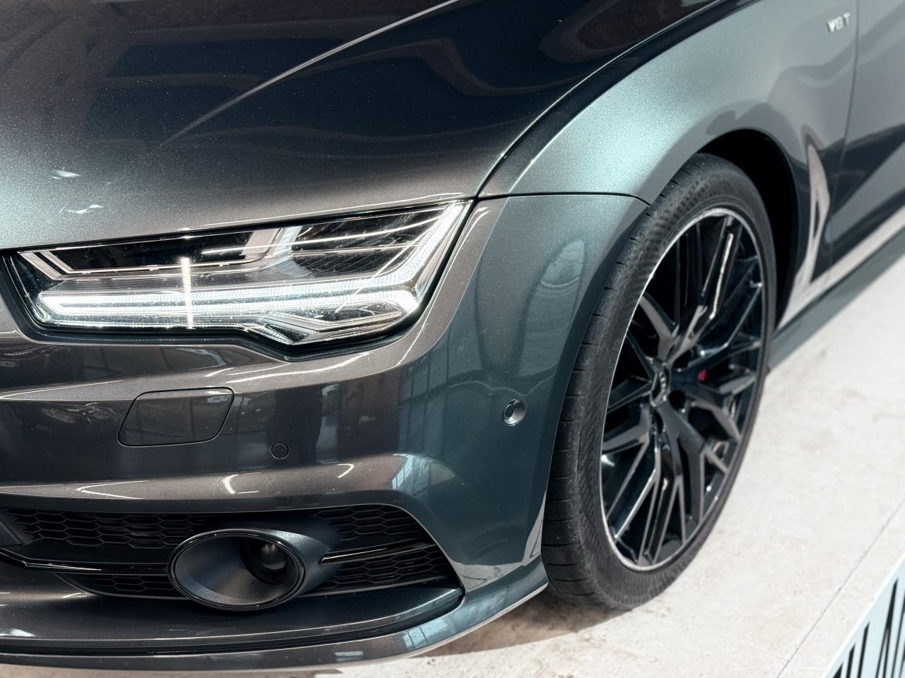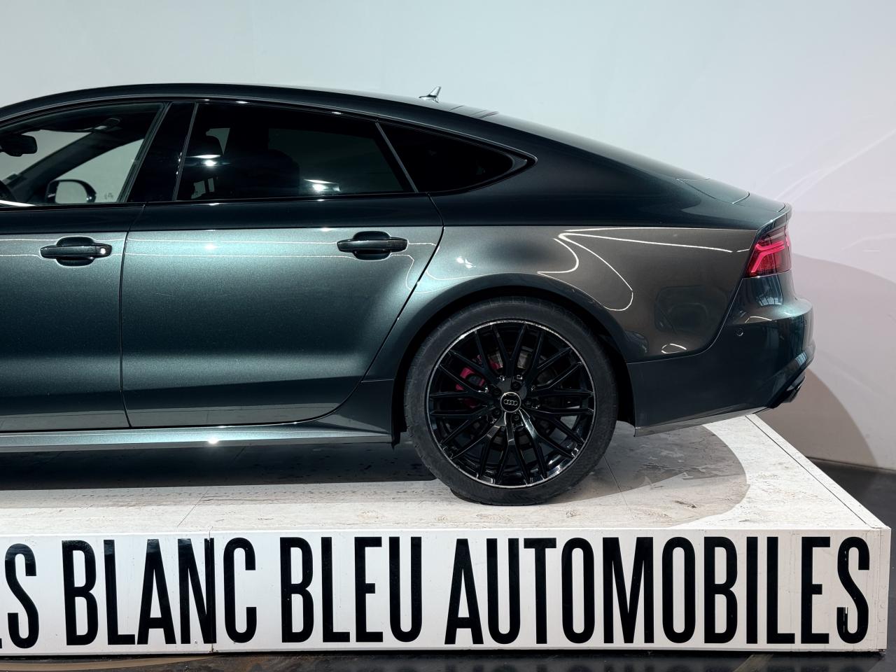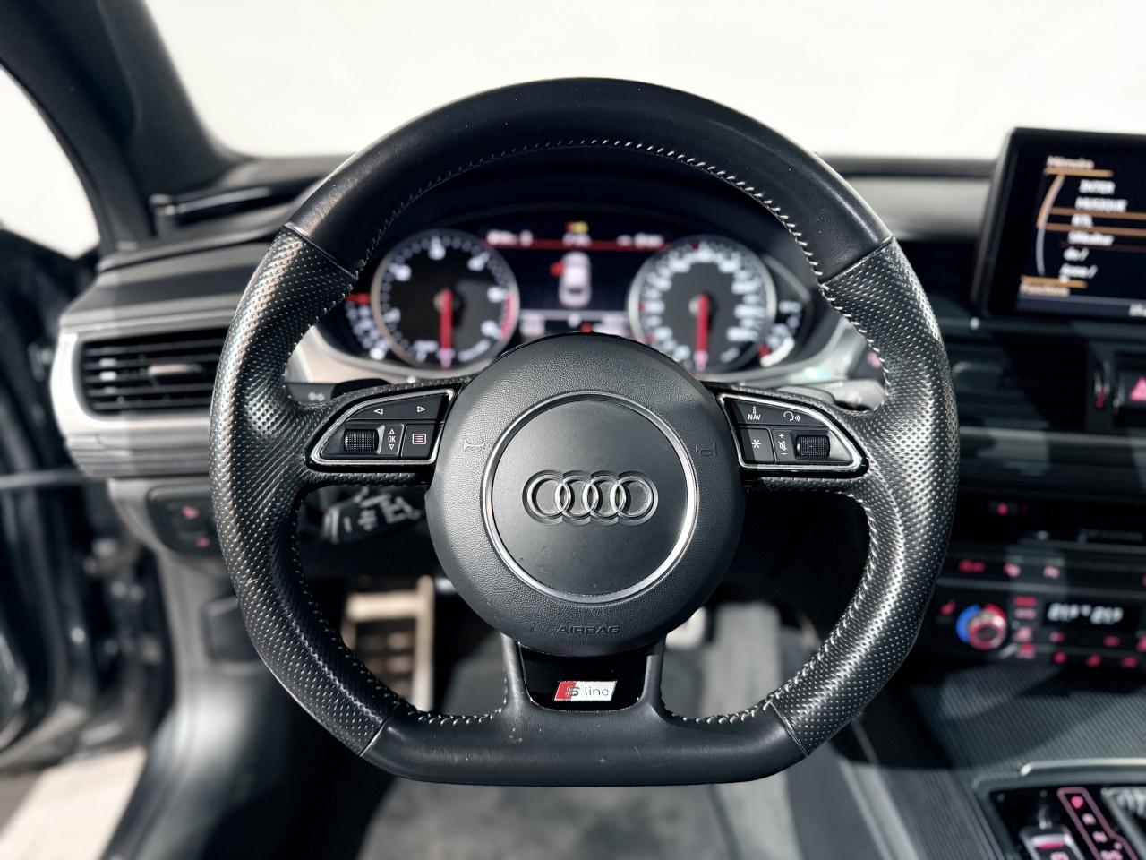 ABS (antiblocage de roue) avec répartiteur de freinage EBV et assistance hydraulique au freinage d'urgenceAccoudoir central avant en cuirAccoudoir central avant pour conducteur et passager avant, avec 2 porte-boissons intégrésAirbags conducteur et passagerAirbags frontaux conducteur et passager grand volume, à deux niveaux de gonflement suivant la gravité du choc, latéraux avant et arrière intégrés aux dossiers des siègesApplications aluminium autour des diffuseurs d'air, de l'écran MMI, sur la commande du frein de stationnement électromécanique et les lève-vitresApplications décoratives en bois noir (Chêne Beaufort) avec inserts en aluminiumAppuie-tête avant et arrièreASR (antipatinage) pour une motricité et une rigidité transversale optimales. Réduit le patinage des roues motricesAudi Drive Select avec mode «efficiency»Audi Hold Assist, maintient le véhicule à l'arrêt, aussi bien en côte qu'en descente, sans limite de tempsAudi Music InterfaceAudi Park AssistAudi Parking System Plus avant et arrièreAudi pre senseAudi sound system : amplificateurs à 6 canaux, 10 haut-parleurs dont un central dans le tableau de bord et subwoofer dans le coffre.Puissance totale 180 WBanquette arrière : trois places, rabattable 40/60Becquet arrière asservi à la vitesseBoîte à gants grand volume, éclairée et verrouillableCapacité du réservoir : 73 litresCarrosserie hybride en aluminium (capot moteur, hayon, portières et ailes)Ceintures de sécurité trois points à enrouleur à toutes les places avec prétensionneur réversible, limiteur de tension et réglage en hauteur à l'avantCendrier et allume-cigare éclairés à l'avant et à l'arrièreChâssis Sport : suspensions et amortisseurs dynamiques, abaissement de 10 mmCiel de pavillon en tissu noirClignotants arrière dynamiques à LEDClignotants arrière et clignotants intégrés aux rétroviseurs extérieurs à diodes électroluminescentesClimatisation automatique confort avec ventilation indirecteCoffre à bagages à ouverture et fermeture automatiquesCoffre à bagages grand volume, avec filet mixte, oeilletons de fixation, filet à bagages sur le côté droit du coffre et 1 prise 12 voltsColonne de direction réglable en hauteur / profondeurContrôle de la pression des pneus avec signaux acoustique et visuel de perte de pressionCoques de rétroviseurs noiresCouleur des ceintures assortie à celle de l'habitacleDémarrage et arrêt du moteur par simple impulsion sur le bouton moteur "Start/Stop engine" intégré à la console centrale, nécessite simplement d'avoir la clé sur soiDétecteur de pluie et de luminosité incluant rétroviseur intérieur jour/nuit automatiqueDétecteur de port de ceinture avec signaux acoustique et visuel à l'avantDirection électromécanique à assistance variable (asservie à la vitesse)Direction servotronicEclairage de la plaque minéralogique arrière à LEDEclairage intérieur à temporisation à l'avant et à l'arrière avec contacteurs sur toutes les portières, configurable par MMIEcrous antivolEDS (blocage électronique de différentiel)ESC (programme électronique de stabilisation)Etriers de frein rougesFeux de freinage adaptatif (déclenchement des feux de détresse automatique)Feux diurnes, feux stop et clignotants arrière à LED, 3e feu stop surélevé ; 2 feux de recul blancs et 2 feux antibrouillard arrièreFixations pour sièges enfant ISOFIX aux places extérieures arrièreFrein de stationnement électromécanique avec fonction Hold Assist, désactivation automatique au démarrage et fonction frein de secours sur les quatre roues durant la marcheGestionnaire de batterie, commande à l'aide de capteurs une alimentation électrique optimale du véhicule durant la marche et à l'arrêtIdentification du modèle et de la technologie sur la malle arrière ainsi qu'inscription quattro sur la calandre et sur le tableau de bord côté passagerInscription « V6T » sur les ailes avantInterface Bluetooth avec Bluetooth AudiostreamingJantes en aluminium 5 branches en W contrastées noires 265/35 R20Livre de bord avec étuiLunette arrière dégivrante, avec minuterieNavigation MMI avec carte SD 8Go incluseOrdinateur de bord (écran monochrome)Pack EclairagePack Esthétique noirPack extérieur S linePare-brise en verre feuilleté athermique teinté vertPare-soleil conducteur et passager avant rabattables et orientables avec miroir de courtoisie éclairé et occultablePeinture métallisée ou nacréePhares avant intégralement à LEDPommeau de levier de vitesses en cuir perforé avec surpiqûres gris jetPréparation pour crochet d'attelageProtections latérales anticollisionRégulateur de vitesseRétroviseurs extérieurs électriques et à mémoire, dégivrants et rabattables avec clignotants à LEDRoue de secours type galette avec cric de levageSécurité enfants sur le verrouillage des ceintures à enrouleur côté passager avant et à l'arrièreSécurité enfants sur les portières et les vitres électriques arrièreSellerie cuir de haute qualité Valcona avec logo S line ; cuir souple et grainage finSeuils de portes avec inscription "quattro"Sièges avant à réglages électriques avec fonction mémoire pour siège conducteur. Inclut appuis lombaires électriquesSièges avant sportSignal sonore pour oubli d'extinction des feuxSorties d'échappement noir brillantSupports lombaires électriquesSystème Start/ Stop avec récupération d'énergie de freinageTélécommande de verrouillage centralisé à fréquence radio avec ouverture/fermeture confort pour les vitres électriques, le coffre et la trappe à carburantTémoins de contrôle pour airbags, ESC/ASR, adaptive air suspension, EDS, frein de stationnement électromécanique, régulateur de vitesse, feux de route,feux arrière antibrouillard, clignotants, électronique moteur et protection antidémarrageTapis de sol complémentaires avant et arrière dans la couleur de la moquetteTransmission intégrale permanente quattroTriang