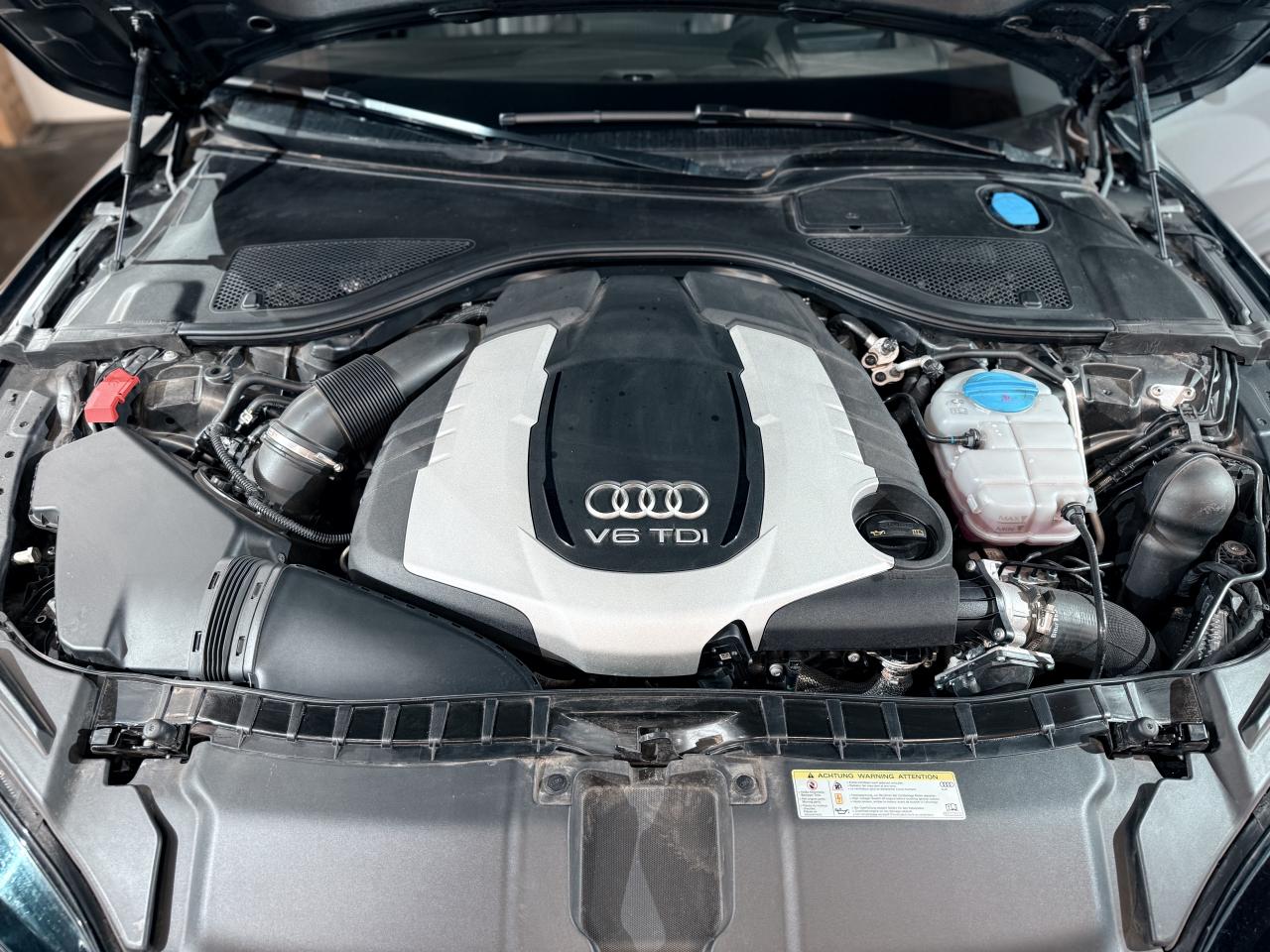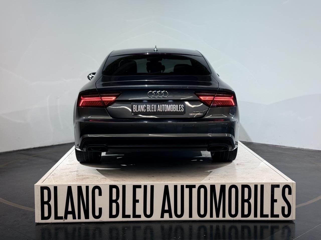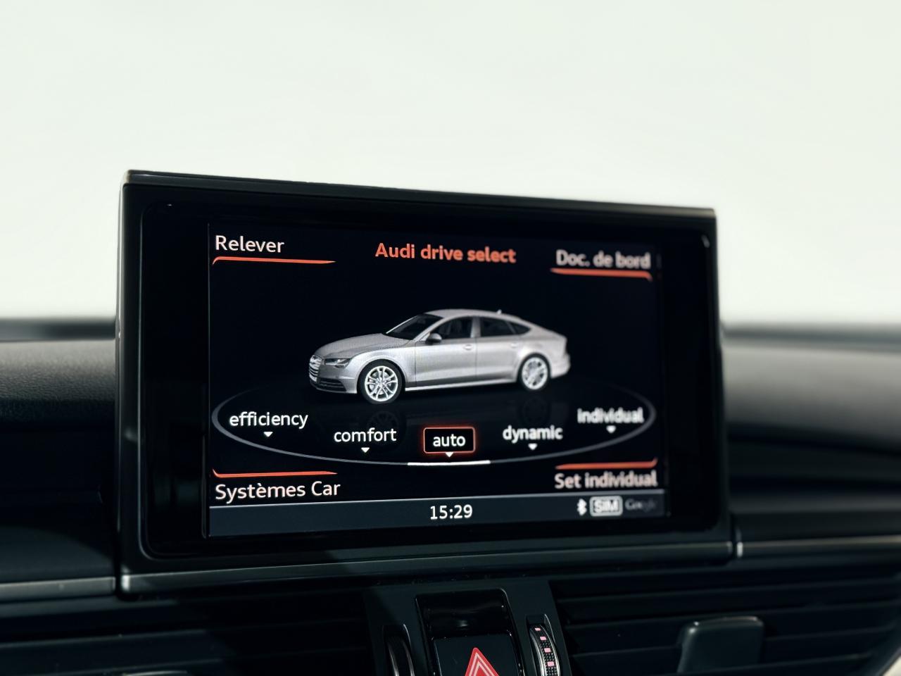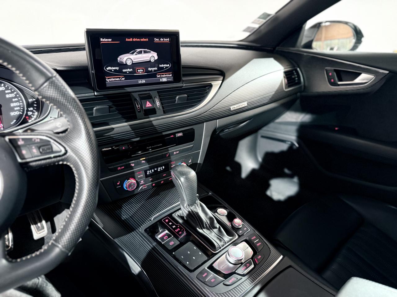 ABS (antiblocage de roue) avec répartiteur de freinage EBV et assistance hydraulique au freinage d'urgenceAccoudoir central avant en cuirAccoudoir central avant pour conducteur et passager avant, avec 2 porte-boissons intégrésAirbags conducteur et passagerAirbags frontaux conducteur et passager grand volume, à deux niveaux de gonflement suivant la gravité du choc, latéraux avant et arrière intégrés aux dossiers des siègesApplications aluminium autour des diffuseurs d'air, de l'écran MMI, sur la commande du frein de stationnement électromécanique et les lève-vitresApplications décoratives en bois noir (Chêne Beaufort) avec inserts en aluminiumAppuie-tête avant et arrièreASR (antipatinage) pour une motricité et une rigidité transversale optimales. Réduit le patinage des roues motricesAudi Drive Select avec mode «efficiency»Audi Hold Assist, maintient le véhicule à l'arrêt, aussi bien en côte qu'en descente, sans limite de tempsAudi Music InterfaceAudi Park AssistAudi Parking System Plus avant et arrièreAudi pre senseAudi sound system : amplificateurs à 6 canaux, 10 haut-parleurs dont un central dans le tableau de bord et subwoofer dans le coffre.Puissance totale 180 WBanquette arrière : trois places, rabattable 40/60Becquet arrière asservi à la vitesseBoîte à gants grand volume, éclairée et verrouillableCapacité du réservoir : 73 litresCarrosserie hybride en aluminium (capot moteur, hayon, portières et ailes)Ceintures de sécurité trois points à enrouleur à toutes les places avec prétensionneur réversible, limiteur de tension et réglage en hauteur à l'avantCendrier et allume-cigare éclairés à l'avant et à l'arrièreChâssis Sport : suspensions et amortisseurs dynamiques, abaissement de 10 mmCiel de pavillon en tissu noirClignotants arrière dynamiques à LEDClignotants arrière et clignotants intégrés aux rétroviseurs extérieurs à diodes électroluminescentesClimatisation automatique confort avec ventilation indirecteCoffre à bagages à ouverture et fermeture automatiquesCoffre à bagages grand volume, avec filet mixte, oeilletons de fixation, filet à bagages sur le côté droit du coffre et 1 prise 12 voltsColonne de direction réglable en hauteur / profondeurContrôle de la pression des pneus avec signaux acoustique et visuel de perte de pressionCoques de rétroviseurs noiresCouleur des ceintures assortie à celle de l'habitacleDémarrage et arrêt du moteur par simple impulsion sur le bouton moteur "Start/Stop engine" intégré à la console centrale, nécessite simplement d'avoir la clé sur soiDétecteur de pluie et de luminosité incluant rétroviseur intérieur jour/nuit automatiqueDétecteur de port de ceinture avec signaux acoustique et visuel à l'avantDirection électromécanique à assistance variable (asservie à la vitesse)Direction servotronicEclairage de la plaque minéralogique arrière à LEDEclairage intérieur à temporisation à l'avant et à l'arrière avec contacteurs sur toutes les portières, configurable par MMIEcrous antivolEDS (blocage électronique de différentiel)ESC (programme électronique de stabilisation)Etriers de frein rougesFeux de freinage adaptatif (déclenchement des feux de détresse automatique)Feux diurnes, feux stop et clignotants arrière à LED, 3e feu stop surélevé ; 2 feux de recul blancs et 2 feux antibrouillard arrièreFixations pour sièges enfant ISOFIX aux places extérieures arrièreFrein de stationnement électromécanique avec fonction Hold Assist, désactivation automatique au démarrage et fonction frein de secours sur les quatre roues durant la marcheGestionnaire de batterie, commande à l'aide de capteurs une alimentation électrique optimale du véhicule durant la marche et à l'arrêtIdentification du modèle et de la technologie sur la malle arrière ainsi qu'inscription quattro sur la calandre et sur le tableau de bord côté passagerInscription « V6T » sur les ailes avantInterface Bluetooth avec Bluetooth AudiostreamingJantes en aluminium 5 branches en W contrastées noires 265/35 R20Livre de bord avec étuiLunette arrière dégivrante, avec minuterieNavigation MMI avec carte SD 8Go incluseOrdinateur de bord (écran monochrome)Pack EclairagePack Esthétique noirPack extérieur S linePare-brise en verre feuilleté athermique teinté vertPare-soleil conducteur et passager avant rabattables et orientables avec miroir de courtoisie éclairé et occultablePeinture métallisée ou nacréePhares avant intégralement à LEDPommeau de levier de vitesses en cuir perforé avec surpiqûres gris jetPréparation pour crochet d'attelageProtections latérales anticollisionRégulateur de vitesseRétroviseurs extérieurs électriques et à mémoire, dégivrants et rabattables avec clignotants à LEDRoue de secours type galette avec cric de levageSécurité enfants sur le verrouillage des ceintures à enrouleur côté passager avant et à l'arrièreSécurité enfants sur les portières et les vitres électriques arrièreSellerie cuir de haute qualité Valcona avec logo S line ; cuir souple et grainage finSeuils de portes avec inscription "quattro"Sièges avant à réglages électriques avec fonction mémoire pour siège conducteur. Inclut appuis lombaires électriquesSièges avant sportSignal sonore pour oubli d'extinction des feuxSorties d'échappement noir brillantSupports lombaires électriquesSystème Start/ Stop avec récupération d'énergie de freinageTélécommande de verrouillage centralisé à fréquence radio avec ouverture/fermeture confort pour les vitres électriques, le coffre et la trappe à carburantTémoins de contrôle pour airbags, ESC/ASR, adaptive air suspension, EDS, frein de stationnement électromécanique, régulateur de vitesse, feux de route,feux arrière antibrouillard, clignotants, électronique moteur et protection antidémarrageTapis de sol complémentaires avant et arrière dans la couleur de la moquetteTransmission intégrale permanente quattroTriang