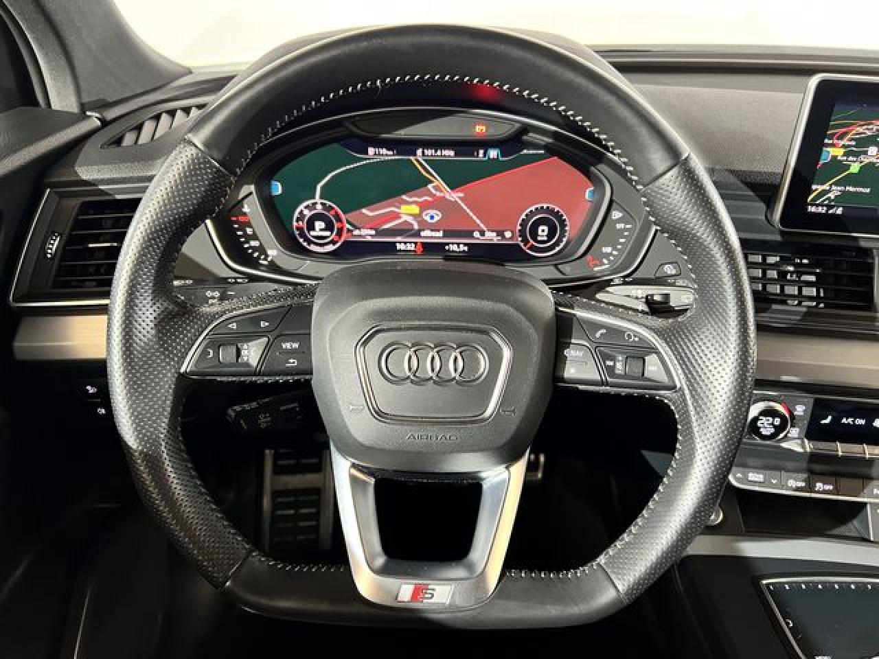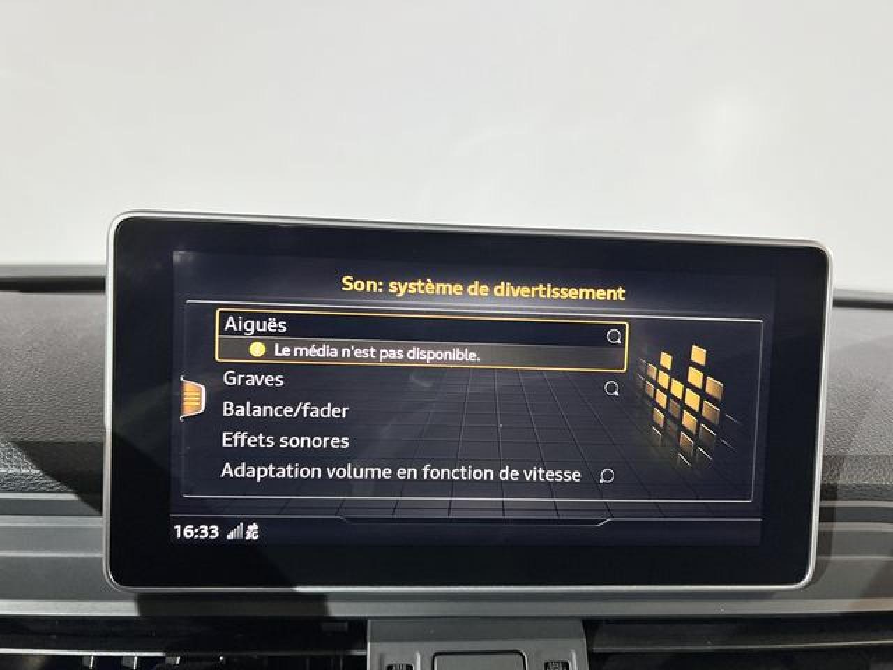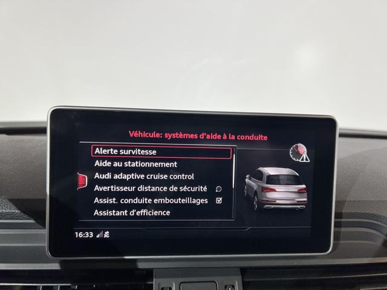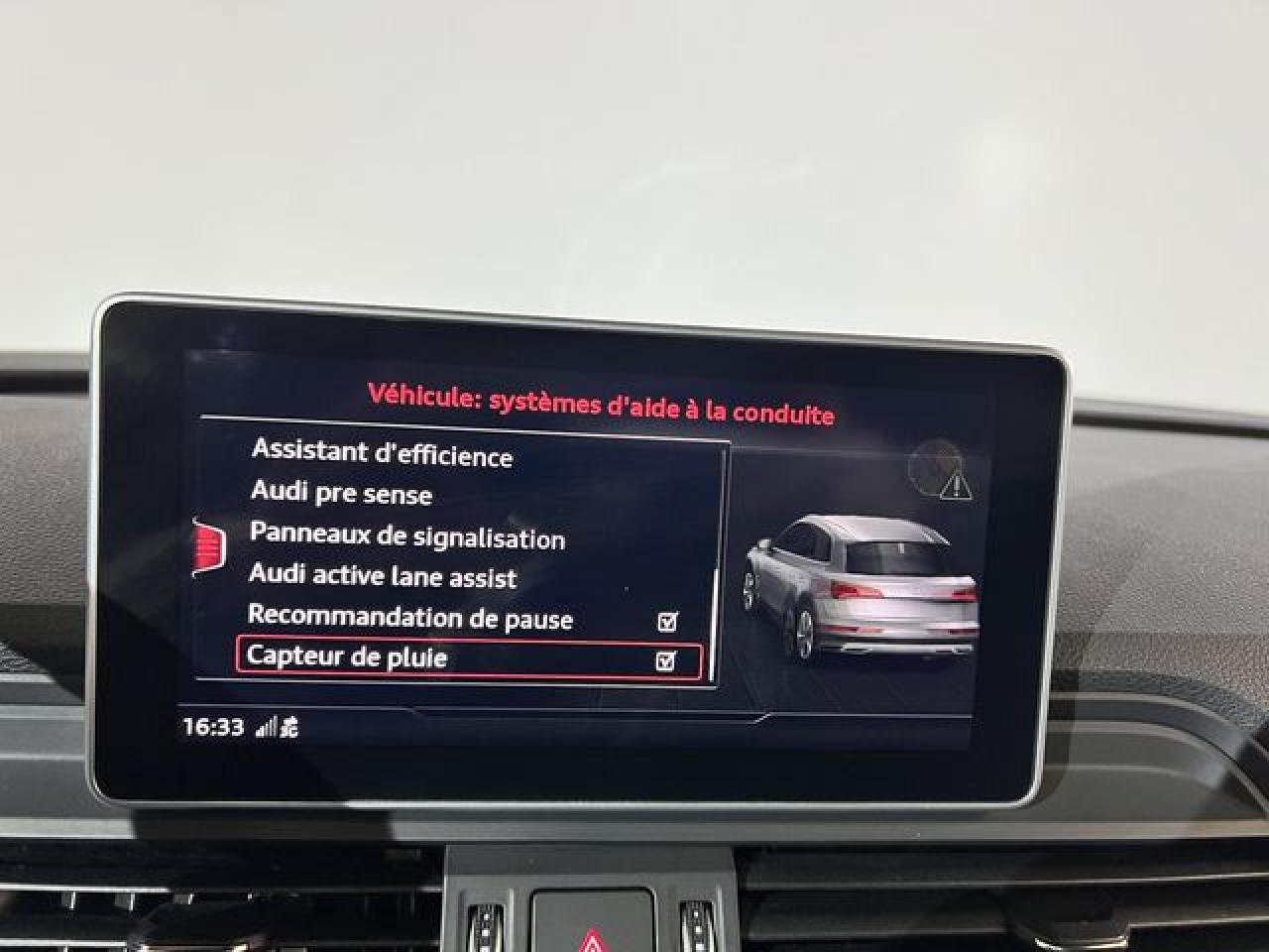 Accès ConfortAccoudoir central avantAffichage du contrôle de la pression des pneumatiquesAirbags grand volume pour le conducteur et le passagerAirbags latéraux à l'avant et système d'airbags de têteAntipatinage ASR pour une motricité optimale, empêche le patinage des roues motricesApplications décoratives en aluminium brossé matAppui lombaire à 4 axes pour les sièges avant, réglage électrique, horizontal et verticalAudi connectAudi connect "Sécurité et Service"Audi Drive SelectAudi parking system plus : signal acoustique et visuel d'aide au stationnement avant et arrière par pictogrammes sur l'écranAudi pre sense cityAudi smartphone interfaceAudi Sound SystemAudi virtual cockpitBlocage électronique de différentiel (EDS)Capot de coffre à ouverture et fermeture électriquesCeintures de sécurité, automatiques à trois points pour tous les sièges, contrôle de port de ceinture à l'avant, couleur assortie à celle de l'habitacleCendriers et allume-cigaresChâssis sport SCiel de pavillon en tissu noirClimatisation automatique confort 3 zonesDésactivation de l'airbag passager (désactive aussi l'airbag latéral passager)Détecteur de pluie et allumage automatique des projecteursDéverrouillage et ouverture du hayon par un mouvement de piedDirection assistée électromécaniqueDispositif anti-erreur de carburantDossier de banquette arrière rabattable à distance et en trois parties 40 : 20 : 40 ou complètementEclairage intérieur à extinction temporisée et contacteurs sur toutes les portièresEcrous antivolEmblême S line sur les ailes avantESC (contrôle électronique de stabilisation)Feux arrière rouges, avec feux de recul blancs et feux de brouillard arrière intégrés, feux de plaque arrière à LED ; incluant troisième feu stop surélevéFixation pour sièges enfants ISOFIX et Top Tether pour les places arrière extérieuresFixation pour sièges enfants ISOFIX sur le siège passager avant et les sièges arrièreFrein de stationnement électromécanique ; comprend la fonction de frein de stationnement à l'arrêt, l'assistance au démarrage par désactivation lors du démarrage et fonction de freinage d'urgence sur les quatre rouesFreins à disque à l'avant et à l'arrièreIdentification du modèle/technologie sur le capot de coffreInscription quattro sur la calandre, le capot de coffre et le tableau de bord côté passagerInterface BluetoothKeyless entry : système de verrouillage et de déverrouillage du véhicule sans utilisation de la cléLimitateur et régulateur de vitesseMMI radio plus, inclut radios AM/FM, lecteur de cartes SDCX, prise d'entrée AUX, lecteur CD, interface USB avec fonction de charge, commande MMI et 8 haut-parleurs passifs (4 à l'avant + 4 à l'arrière)Moulures de seuil à l'avant avec insert en aluminium et inscription S, éclairéesNavigation MMI plus avec MMI touchOutillage de bord et cricPare-brise acoustiquePédalier et repose-pied en acier inoxydablePeinture intégralePeinture verniePhares à LED avec clignotants arrière à LED dynamiquesPréparation pour crochet d'attelageProtection antidémarrage électronique, intégrée à la gestion du moteur, activation automatique par la clé du véhiculeQuattro avec technologie ultraRampes de pavillon anodiséesRécupération d'énergieRéglage en hauteur des ceintures de sécuritéRéservoir AdBlue de 12 LRétroviseur intérieur électrochrome sans contourRétroviseurs extérieurs avec clignotants à LED intégrésRétroviseurs extérieurs réglables et rabattables électriquement, dégivrants des deux côtés et buses de lave-glace dégivrantesSécurité enfantsSellerie mixte en tissu Séquence et cuir avec estampillage S sur le dossier des sièges avantSet de réparation pour pneus avec compresseur 12 volts et produit de colmatage pour les pneus, vitesse maximale 80 km/hSièges avant réglables manuellement en hauteur et en profondeur, appuie-tête réglables manuellementSièges Sport à l'avantSystème Keyless goSystème Start/Stop réduit la consommation de carburant ainsi que les émissions de CO2Tapis complémentaires à l'avant et à l'arrièreTapis de coffreTriangle de présignalisation et trousse de secoursVide-pochesVitres athermiquesVitres surteintées avec vitrage acoustique pour les vitres de portières avantVolant 3 branches multifonction plus en cuir badgé S line avec méplat et poignées de volant en cuir perforé, avec palettes de changement de vitesse