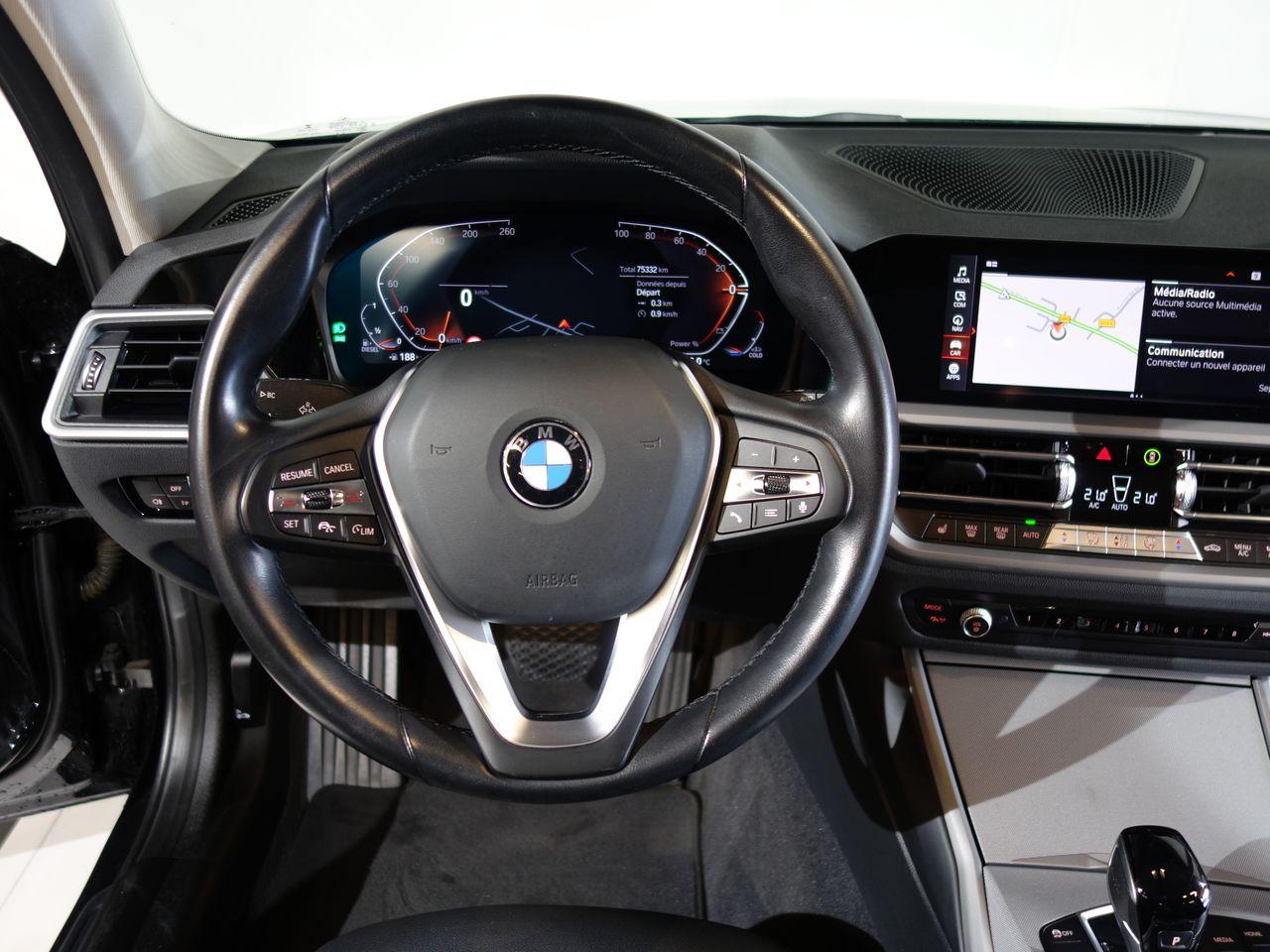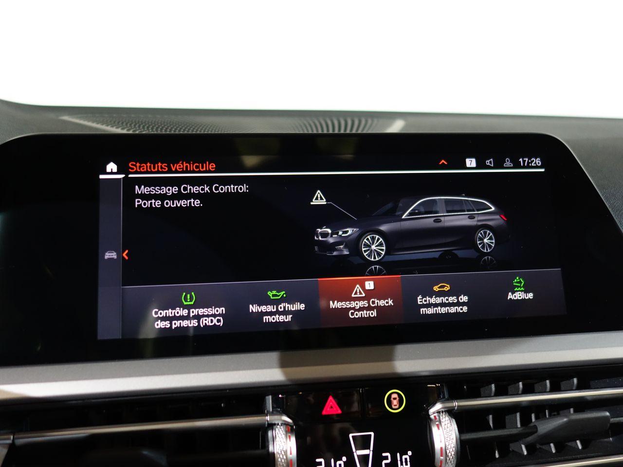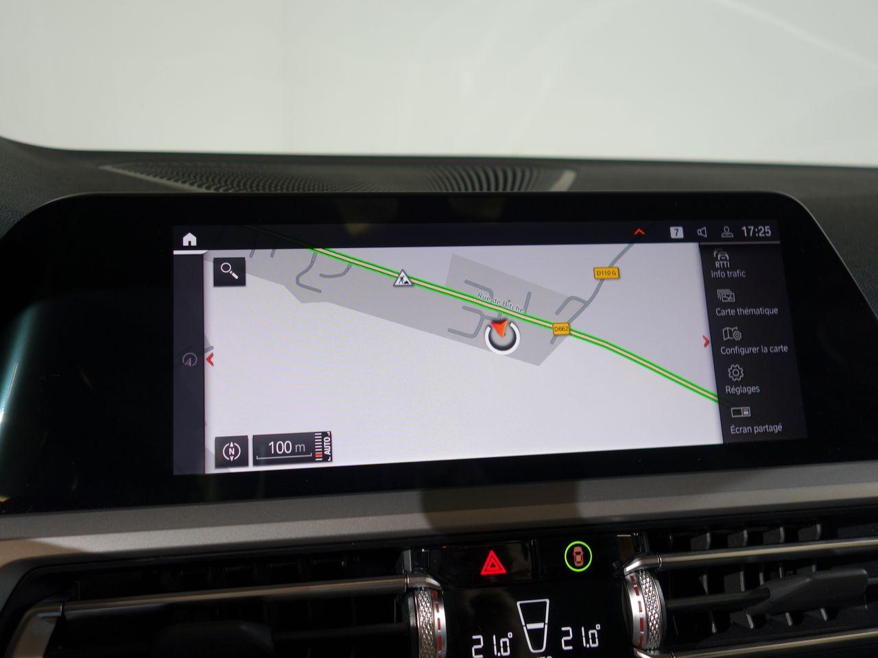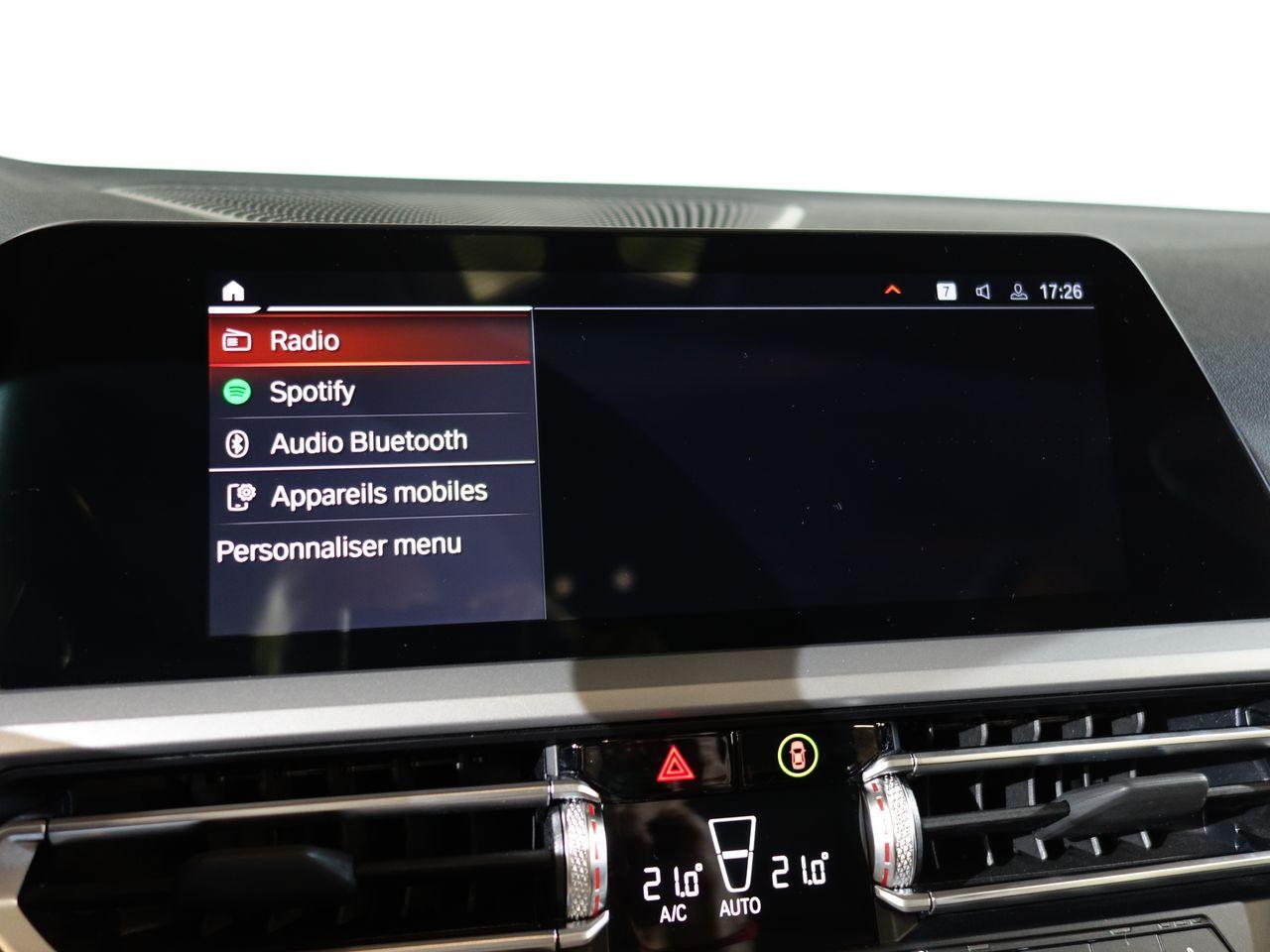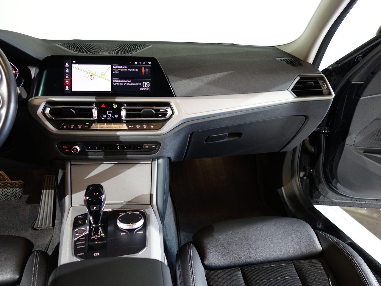 Airbags de tête avant et arrière avec voile de protection contre les débris de verreAirbags frontaux AVAirbags latéraux avantAntenne de toit « aileron de requin »Apps VéhiculeAttention Assist : système de détection de somnolenceBaguettes de seuil de portes sigléesBanquette arrière 3 places avec dossiers rabattables en trois parties (40/20/40)BMW Live Cockpit Navigation ProClignotants avant et arrières à LEDClimatisation automatique 3 zones avec filtre microporeux et fonction de recyclage d'airContrôle Dynamique de la Stabilité DSC+ avec fonctionnalités étenduesContrôle Dynamique de la Traction DTCFeux arrière à LEDFeux arrière antibrouillard à LEDFeux de jour à LEDFixations ISOFIX aux places latérales arrières pour sièges enfantJantes 17" style 775 rayons en V bicoloresKit rangementPack Connected ProPortes arrière avec sécurité enfantRadars de stationnement avant et arrière PDCRétroviseur intérieur anti-éblouissementRétroviseurs extérieurs dégivrantsRétroviseurs extérieurs rabattables électriquement et électrochromatique du côté conducteurSélecteur de mode de conduite - 3 modes : "ECO PRO", "Confort" et "Sport"Sièges conducteur et passager réglables en hauteur et inclinaison du dossierSystème de haut-parleurs Hi-FiTuner DABVerrouillage centralisé avec télécommandeVitrage teinté pour réduire l'échauffement dû à l'ensoleillementVitres avant et arrière électriques à impulsion avec système ant-ipincementVolant sport 3 branches gainé de cuir