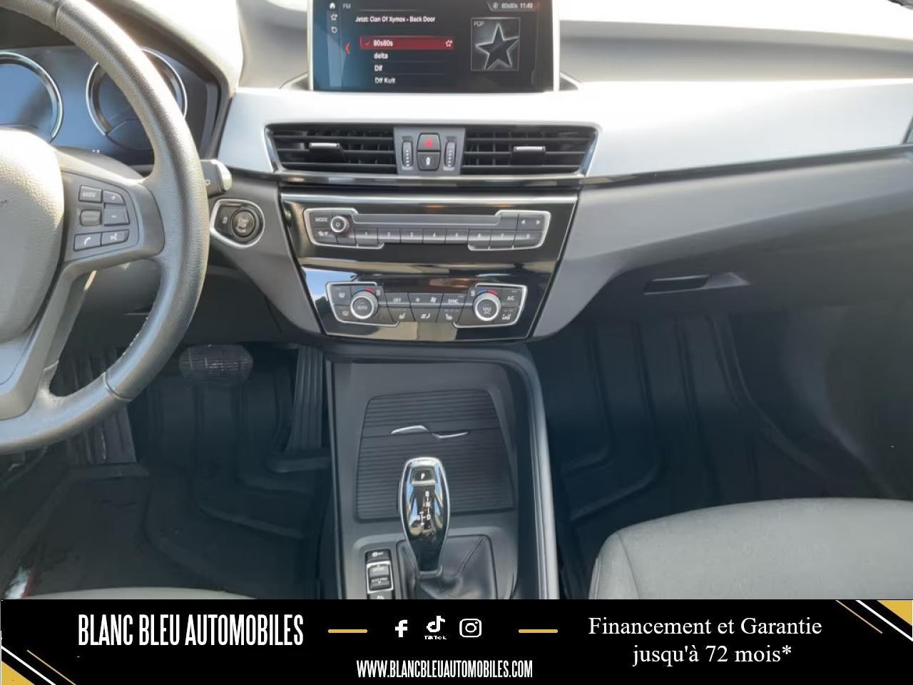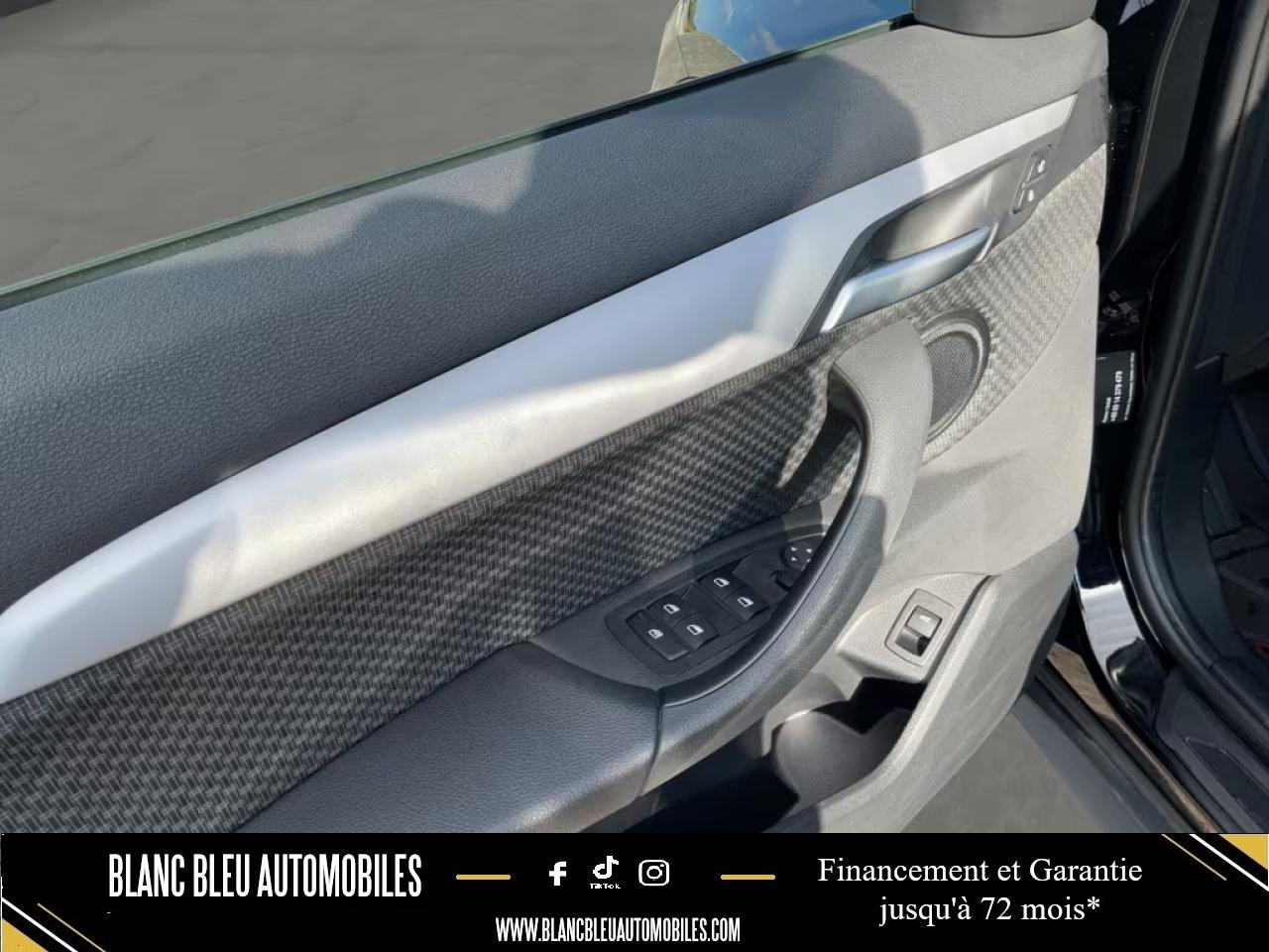6 haut-parleurs dont 2 caissons de basse sous les sièges avant, amplification 4 x 25wAirbags conducteur et passagerAirbags de tête avant et arrière avec voile de protection contre les débris de verreAntenne de toit « aileron de requin »Anti-démarrage électroniqueAppel d'Urgence IntelligentAttention Assist : système de détection de somnolenceBoîte de vitesses automatique à double embrayage à 7 rapportsClés radiocommandées à mémorisation automatique des réglages "Personal Profile"Climatisation automatique bi-zone, avec aérateurs à l'arrièreCommande électrique du hayonContrôle dynamique de la stabilité DSCContrôle Dynamique de la Traction DTCDémarrage sans clé via le bouton Start/StopFeux antibrouillard arrièreFeux de jour à LEDInformation Trafic en Temps Réel RTTIInterface Bluetooth avec fonction streaming audioKit de mobilité BMWKit rangementLimiteur et régulateur de vitesse avec maintien de la vitesse en descenteNavigation multimédia BusinessOrdinateur de bord avec Check-Control et indicateur de température extérieurePack SimpliCityProjecteurs Full LEDRails de toit Aluminium Line satinéRétroviseurs extérieurs à réglages électriques (asphérique côté conducteur), dégivrants avec répétiteur de clignotant intégréRétroviseurs extérieurs couleur carrosserieSélecteur de mode de conduite - 3 modes : "ECO PRO", "Confort" et "Sport"Sellerie tissu "Grid"Services BMW ConnectedDriveSystème de récupération de l'énergie au freinageTapis de sol en veloursTechnologie BMW TwinPower Turbo avec injection directeTouches multifonctions sur le volantTuner DABVerrouillage centralisé des portes, du coffre et de la trappe à carburantVitres avant et arrière électriques à impulsion avec système ant-ipincementVolant réglable en hauteur et en profondeurVolant Sport gainé cuir