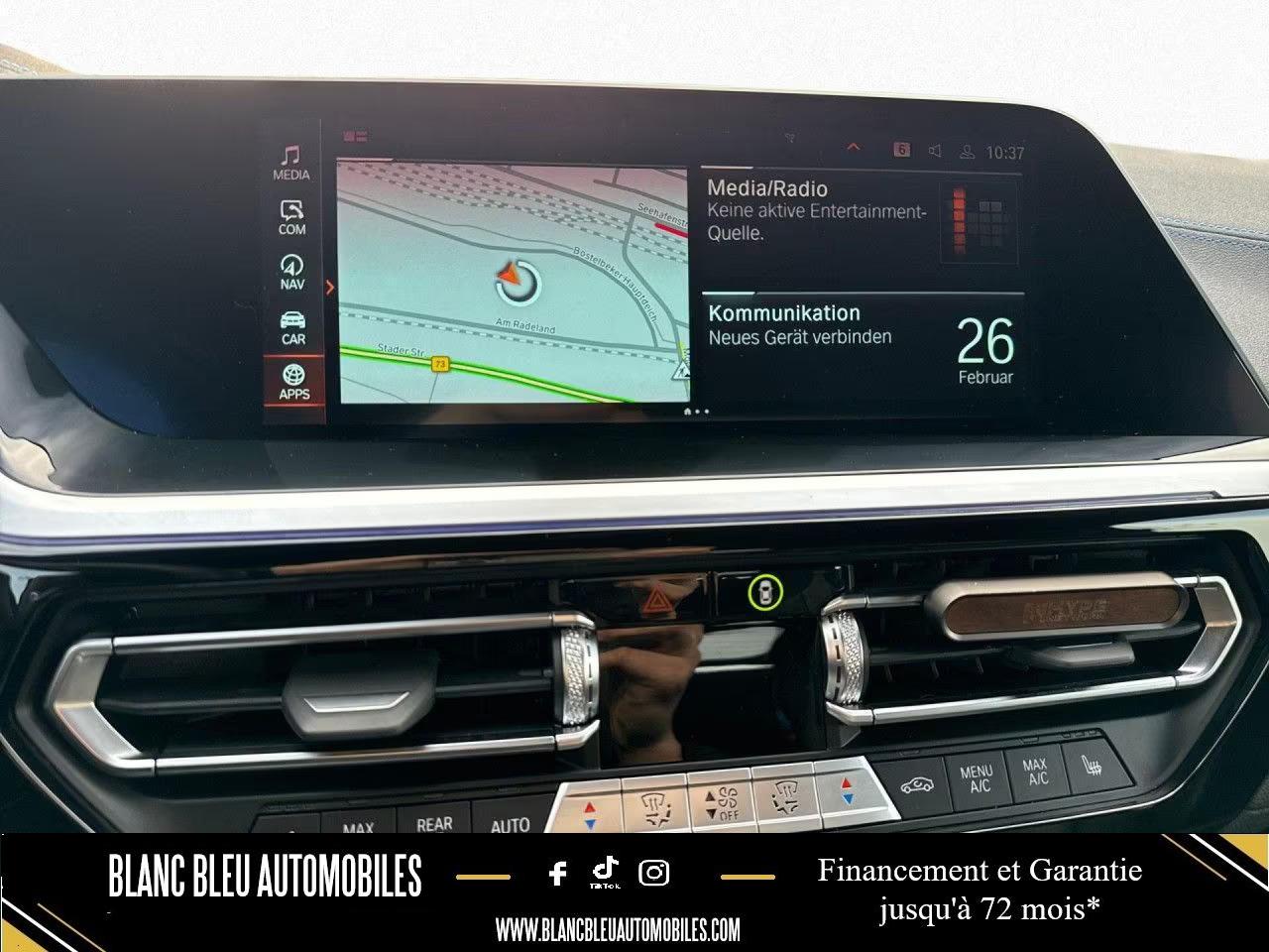 ABS, y compris assistant de freinageAide au stationnement avant/arrièreBMW Live Cockpit Navigation ProBoîte de vitesses automatique Sport à 8 rapports et palettes au volantClimatisation automatique bi-zoneContrôle Dynamique de la Stabilité DSC+ avec fonctionnalités étenduesContrôle Dynamique de Traction DTCDémarrage sans clé via le bouton Start/StopInterface Bluetooth pour téléphone portable (mains-libres)Kit éclairageKit rangementPack Aérodynamique MPack Connected ProPédalier spécifique MPrise 12V dans la console centraleProjecteurs Full LEDRétroviseur intérieur électrochromeRétroviseurs extérieurs rabattables électriquement et électrochromatique du côté conducteurSellerie Cuir Vernasca/Alcantara Schwarz avec surpiqûres contrastantes bleuesShadow Line M brillantSièges conducteur et passager réglables en hauteurSièges M SportSuspension DirectDriveSystème Hi-Fi et 10 HPTuner DABVerrouillage automatique des portes dès 15km/hVolant M gainé cuir