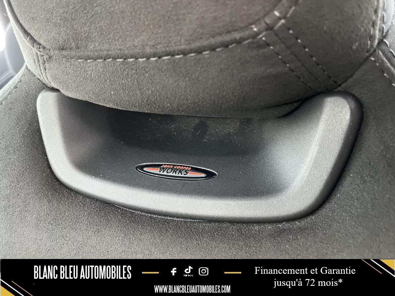 Intégration d'un Smartphone via Apple Car Play et Android AutoAccoudoir central avantAide au stationnement avant/arrièreAutoradio AM/FM/DABBoite de vitesses robotiséeCalandre au contour chromé avec lamelles “Piano Black”Ciel de pavillon anthraciteClignotants blancsClimatisation automatique bi-zoneColour Line Carbon BlackContrôle Dynamique de la Stabilité DSC, y compris assistant de démarrage en côteDétecteur de pluie et allumage automatique des projecteursEclairage d'accompagnement "Follow me Home"Fixations ISOFIX aux places arrièreFixations ISOFIX pour le siège passager avant + désactivation de l'airbagFonction Start & Stop et démarrage sans cléInserts décoratifs Hazy GreyJantes en alliage 17'' design JCW ''Track Spoke'' Noires 7 J x 17 / pneumatiques 205/45 R17MINI driving modesMINI Excitement packageOrdinateur de bordPack Connected NavigationPare-chocs avant et arrière dans la couleur de la carrosseriePerformance ControlPoignée de hayon “Piano Black”Port USBProjecteurs antibrouillard à LEDRégulateur de vitesse avec fonction de freinageSièges avant réglables en hauteurSièges avant sport John Cooper Works avec sellerie tissu/dinamicaSystème Bluetooth avancé avec recharge par induction du téléphoneSystème de capot actif (DHS)Touches multifonctions sur le volantVerrouillage centralisé des portes, du coffre et de la trappe à essenceVolant Sport gainé cuir John Cooper Works