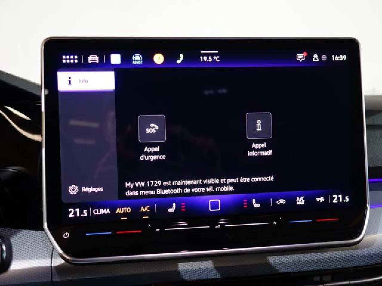 2 interfaces USB-C à l’avant2 prises de chargement USB-C derrière l’accoudoir pour les passagers arrière2 spots de lecture à l'avant et à l'arrière7 haut-parleursAccoudoir central arrière rabattable et deux porte-gobeletsAccoudoir central avant réglable en hauteur et en profondeur avec compartiment de rangementActivation automatique des feux de détresse en cas de freinage d'urgenceAirbags de «tête» passagers avant et arrièreAirbags frontaux avant (déconnectable côté passager)Airbags latéraux avantAlarme antivolAlerte de perte de pression des pneusAntipatinage électronique ASRApp-Connect sans filApplications décoratives "New Brushed Dark Metal" pour le tableau de bord et les revêtements de porte à l'avantAppuis-tête AV et AR réglables en hauteurAssistance au contrebraquageAssistance au freinage d'urgenceBaguette lumineuse entre les projecteursBaguettes chromées sur les vitres latéralesBanquette arrière rabattable 2/3 - 1/3 avec trappe à skisBlocage électronique de différentiel EDSCache-bagages amovibleCaméra de recul 'Rear View'Ceintures de sécurité automatiques avant trois points à enrouleur, réglables en hauteur, avec prétensionneursCerclage chromé des commandes des vitres, de réglage des rétroviseurs et des aérateursChargeur à inductionCiel de pavillon Gris StormClimatiseur "Air Care Climatronic" 3 zones et filtre anti-allergène et éléments de commandes à l'arrièreCommande vocale (IDA) avec amplificateur de voix électroniqueCorrecteur électronique de trajectoire ESPDigital Cockpit Pro : combiné d’instruments digital avec écran digital haute résolution couleur de 10.25”E-call : Appel d’urgence manuel ou automatiqueEclairage à LED de la plaque d'immatriculation arrièreEclairage d'ambiance extérieur : poignées de portes éclairées et éclairage périmétrique avec projection du logoEcrous antivolFatigue Detection : Système de détection de fatigue du conducteurFeu arrière de brouillard d’un côté, feux de recul des deux côtésFeux arrières à LEDFrein de stationnement électromécanique avec fonction d’immobilisation en pente ‘Auto hold’ et assistant de démarrage en côteFront assist avec freinage d’urgence et détection de piétonsIndicateur de température extérieure avec avertisseur de gelInterface Bluetooth pour téléphone portable (mains-libres)Kit de dépannage : compresseur 12 volts et produit d'étanchéité de pneuLane Assistant : assistant de maintien dans la voieLave-essuie-glace arrière à balayage intermittentLight Assist : Activation ou désactivation automatique des feux de routeLimiteur de vitesse prédictifLogo Volkswagen illuminé à l’avantMesures supplèmentaires de protection des piètonsMiroirs de courtoisie éclairés dans les pare-soleil à l'avantOEillets d'arrimage ISOFIX (dispositif pour fixation de 2 sièges-enfant sur la banquette arrière)Pack AmbiancePack Travel Assist: combinaison du Lane Assist, du Side Assist, du Régulateur de distance et de l'Emergency Assist qui interagissentPack visibilitéParkPilot : Système d’aide au stationnement avant/arrière avec signaux sonores et visualisation de la distance des obstacles sur l’écranPoignées de portes, bouclier et rétroviseurs extérieurs couleur carrosseriePommeau de levier de vitesses en cuirPréparation pour ‘VW Connect’ et ‘VW Connect Plus’Prise 12V dans le coffreProjecteurs LED Plus avec fonction antibrouillard intégrée et éclairage statique d’intersectionProtection antidémarrageRéception radio numérique DAB+Réglage du site des pharesRégulateur de vitesse adaptatif et prédictif 'ACC' jusqu’à l’arrêt completRégulateur électronique de couple MSRRépartiteur électronique de freinage EBVRétroviseur intérieur électrochromeRétroviseurs extérieurs rabattables et réglables électriquement, avec fonction mémoire et dégivrage séparéRevêtement de porte et latéral en feuille de mousse et tissuSellerie Microfleece ‘ArtVelours’Service d’appel d’urgence (inclus 10 ans et disponible indépendamment de l’inscription dans le système d’infotainment)Side Assist’ : assistant changement de voie et de sortie de stationnementSiège conducteur ergoActive à réglages électriques avec fonction massage et fonction mémoire, coussin d’assise coulissantSièges avant Confort Sport réglables en hauteur et en appui lombaireSign Assist: Reconnaissance des panneaux de signalisation et affichage sur le ‘Digital Cockpit’ et l’écran du système de radionavigationSignal sonore et lumineux pour ceintures non attachées à l'avant et à l'arrièreSystème d'antiblocage des roues ABSSystème de Freinage anti-multicollisionSystème de Navigation & Infotainment ‘Discover‘ avec “Services de streaming et radio via Internet” via carte eSIM intégrée, et écran couleur tactile 12,9”Système de protection proactive des occupantsSystème de verrouillage et de démarrage sans clé 'Keyless Access'Système Start/ Stop avec récupération d'énergie de freinageTapis de sol avant et arrièreVitres avant et arrière électriquesVolant réglable en hauteur et en profondeurXDS : Système agissant comme un différentiel autobloquant électronique permettant une meilleure motricité en courbe grâce à une répartition optimale de la puissance et du couple sur les roues avant