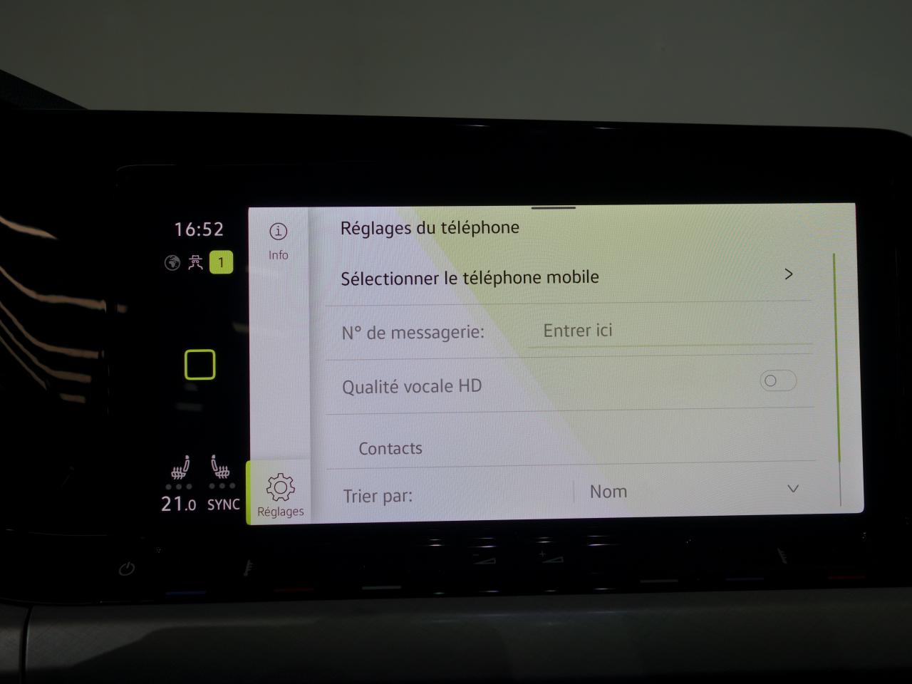2 interfaces USB-C à l'avant et 2 prises de chargement USB-C derrière l’accoudoir pour les passagers arrière2 spots de lecture à l'avant et à l'arrière7 haut-parleursAccoudoir central arrière rabattable et deux porte-gobeletsAccoudoir central avant réglable en hauteur et en profondeur avec compartiment de rangementActivation automatique des feux de détresse en cas de freinage d'urgenceAirbags conducteur et passagerAirbags de «tête» passagers avant et arrièreAirbags latéraux avantAlerte de perte de pression des pneusAntipatinage électronique ASRApplications décoratives «Nature Cross Brushed» sur le tableau de bord et les revêtements de portesAppui-tête arrière réglables en hauteurAppuie-tête à l'avant, réglables en hauteurAppuis lombaires réglables à l’avantAssistance au contrebraquageAssistance au freinage d'urgenceBanquette arrière rabattable 2/3 - 1/3 avec trappe à skisBlocage électronique de différentiel EDSCache-bagages amovibleCaméra de recul 'Rear View'Ceintures de sécurité automatiques avant trois points à enrouleur, réglables en hauteur, avec prétensionneursCerclage chromé des commandes des vitres, de réglage des rétroviseurs et des aérateursCiel de pavillon Gris StormClimatiseur "Air Care Climatronic" 3 zones et filtre anti-allergène et éléments de commandes à l'arrièreCompartiment de rangement et prise 12 V à l' AVCorrecteur électronique de trajectoire ESPDigital Cockpit Pro : combiné d’instruments digital avec écran digital haute résolution couleur de 10.25”E-call : Appel d’urgence manuel ou automatiqueEclairage à LED de la plaque d'immatriculation arrièreEclairage d'ambiance - 10 couleursEclairage d'ambiance extérieur : poignées de portes éclairées et éclairage périmétrique avec projection du logoEcran tactile 10’’Fatigue Detection : Système de détection de fatigue du conducteurFeu arrière de brouillard d’un côté, feux de recul des deux côtésFeux arrière à LEDFixation pour siège enfant ISOFIX (arrière, x2)Frein de stationnement électromécanique avec fonction d’immobilisation en pente ‘Auto hold’ et assistant de démarrage en côteFront assist avec freinage d’urgence et détection de piétonsIndicateur de température extérieure avec avertisseur de gelInterface Bluetooth pour téléphone portable (mains-libres)Interface téléphonique avec fonction de charge inductiveJantes en alliage 7j x 16” Norfolk et pneumatiques 205/55 R16 avec écrous antivolKEYLESS-GO : système de démarrage sans cléLane Assistant : assistant de maintien dans la voieLave-essuie-glace arrière à balayage intermittentLimiteur de vitesseMesures supplèmentaires de protection des piètonsMiroirs de courtoisie éclairés intégrés aux pare-soleilPack visibilitéPare-chocs avant et arrière couleur carrosserieParkPilot : Système d’aide au stationnement avant/arrière avec signaux sonores et visualisation de la distance des obstacles sur l’écranPoignées de portes couleur carrosseriePommeau de levier de vitesses en cuirPréparation We Connect et We Connect PlusPrise 12V dans le coffreProjecteurs avant LEDProtection antidémarrageRéception radio numérique DAB+Réglage du site des pharesRégulateur de vitesse adaptatif et prédictif 'ACC'Régulateur électronique de couple MSRRépartiteur électronique de freinage EBVRétroviseur intérieur électrochromeRétroviseurs extérieurs couleur carrosserieRétroviseurs extérieurs rabattables et réglables électriquement, avec fonction mémoire et dégivrage séparéRevêtement de porte et latéral en feuille de mousse et tissuRoue de secours à encombrement réduit avec cricSellerie en tissu "Maze"Service d’appel d’urgence (inclus 10 ans et disponible indépendamment de l’inscription dans le système d’infotainment)Siège confort à l'avantSièges avant réglables en hauteurSign Assist: Reconnaissance des panneaux de signalisation et affichage sur le ‘Digital Cockpit’ et l’écran du système de radionavigationSystème d'antiblocage des roues ABSSystème de Freinage anti-multicollisionSystème Navigation & Infotainment ‘Discover Media’ avec «Services de streaming et radio via Internet»Système Start/ Stop avec récupération d'énergie de freinageTapis de sol avant et arrièreTechnologie Car2XTémoin et alerte sonore de non-bouclage des ceintures de sécurité avant et arrièreVerrouillage centralisé avec télécommande à fréquence radio par clé rétractableVitres athermiques teintées vertesVitres avant et arrière électriquesVolant multifonction en cuirVolant réglable en hauteur et en profondeurXDS : Système agissant comme un différentiel autobloquant électronique permettant une meilleure motricité en courbe grâce à une répartition optimale de la puissance et du couple sur les roues avant