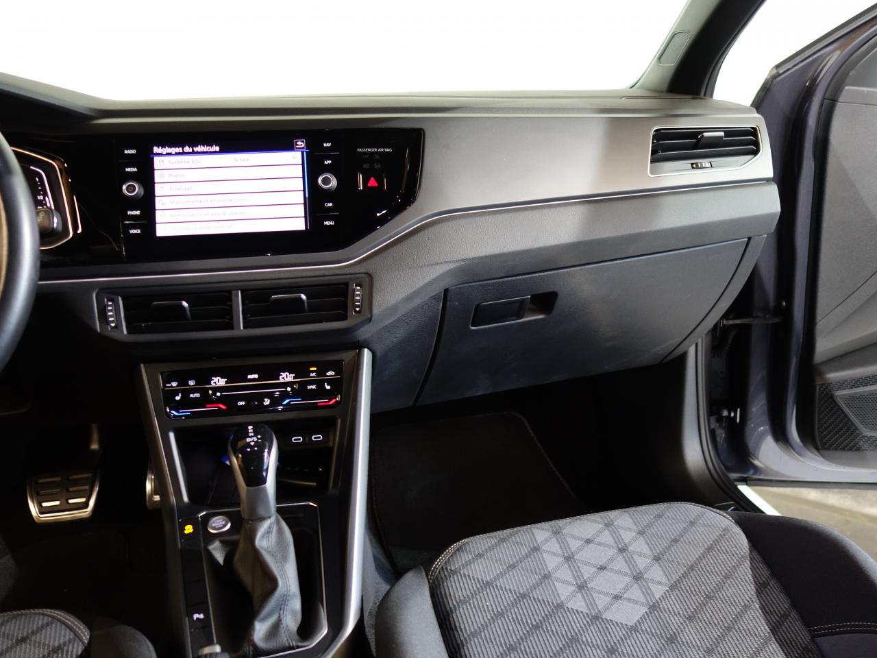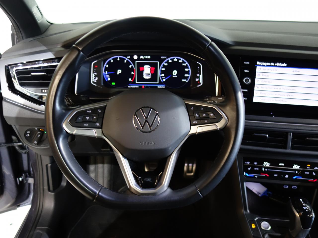 2 interfaces USB-C à l’avant2 ports USB-C de recharge à l’arrière4 jantes en alliage léger «Valencia» 6,5J x 17 et pneumatiques 205/55 R17 avec écrous antivol6 haut-parleursAccoudoir central à l’avant réglable en longueur, avec compartiment de rangementAffichage de la couverture des albumsAide au démarrage en côte "Hill Holder"Airbag central avantAirbags frontaux conducteur et passager (déconnectable côté passager)Airbags latéraux avantAirbags rideaux avant et arrièreAllumage automatique des feux avec fonction ‘Coming home'Antipatinage électronique ASRApp-Connect sans filAppuis-tête (3) et ceintures de sécurité 3 points (3) sur la banquette arrièreAvertissement de franchissement de ligne ‘Lane Assist'Avertisseur sonore et lumineux de non-extinction des phares et de non bouclage des ceintures de sécurité à l’avant et à l’arrièreBaguette lumineuse entre les projecteursBanquette et dossier arrière asymétriques, rabattables 1/3-2/3, avec double plancher de coffre à bagagesBlocage électronique de différentiel EDSBoîte de rangement sous le siège passagerCaméra de recul 'Rear View'Capteur de pluie avec essuie-glace automatiqueCeintures de sécurité trois points à l'avant, à enrouleur avec prétensionneursChargeur de smartphone par inductionCiel de pavillon noirClimatisation automatique bi-zone “Climatronic"Correcteur électronique de trajectoire ESP avec amplificateur de freinage d'urgenceDigital Cockpit ProDirection assistéeE-call : Appel d’urgence manuel ou automatiqueEclairage d'ambiance intérieurEclairage d’ambiance et de plancher à l’avantEclairage du coffre à bagagesEcran couleur tactile 8"Essuie-glaces avant et arrière avec fonction intermittence et lave-glaceFatigue Detection : Système de détection de fatigue du conducteurFeux arrière de brouillardFeux de jour à LEDFonction ‘Intuitive Touch' permettant de faciliter et de sécuriser la commande de l'appareil lors de la conduite (zone de sélection élargie)Front AssistInserts décoratifs Gris Mat sur le tableau de bord et les revêtements de porte à l’avantInterface Bluetooth pour téléphone portable (mains-libres)Keyless Access : Système de verrouillage/déverrouillage sans clé et démarrage avec bouton start/stopKit anticrevaison (compresseur et produit de colmatage)Lampes de lecture à l'avant et à l'arrièreLight Assist : Activation ou désactivation automatique des feux de routeLogo R-Line sur la calandre et les ailesMiroir de courtoisie sur les pare-soleilOeillets d'arrimage ISOFIX (dispositif pour fixation de 2 sièges-enfant sur la banquette arrière et 1 siège enfant sur le siège passager avant)Pédalier en acier inoxydablePare–chocs avant/arrière spécifiques R–LineParkPilot : Système d’aide au stationnement avant/arrière avec signaux sonores et visualisation de la distance des obstacles sur l’écranPoignée de frein à main en cuirPommeau du levier de vitesse en cuirPréparation pour ‘We Connect’ et ‘We Connect Plus'Projecteurs antibrouillard avant avec éclairage statique d'intersectionProjecteurs IQ.Light - Matrix LEDRéception radio numérique DAB+Réglage dynamique du site des pharesRégulateur électronique de couple d'inertie MSRRégulateur de vitesseRétroviseur intérieur électrochromeRétroviseurs extérieurs électriques couleur carrosserie rabattables et dégivrantsRampes de pavillon noiresSellerie spécifique en tissu «R-Line» avec appuis lombairesSeuils de portes avant avec logo R-LineSièges avant Sport-ConfortSièges conducteur et passager réglables en hauteurSystème Audio & Infotainment ‘Ready 2 Discover’ avec " Services de streaming et radio via Internet"Système d'antiblocage des roues ABSSystème Navigation & Infotainment ‘Discover Media'Système Start/ Stop avec récupération d'énergie de freinageTémoin d'alerte pour niveau de liquide lave-glaceTableau de bord mousséTapis de sol avant et arrièreTravel Assist : Assistant de conduite semi-autonome avec assistant en cas d’incapacité du conducteur à réagirVitres arrière et lunette arrière surteintées à 65%Volant multifonctions cuir avec palettes au volant