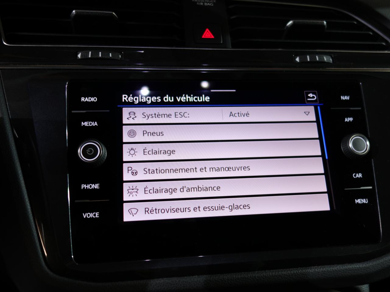 2 ports USB-C à l'avantAccoudoir central avec porte-gobelets intégré dans les sièges arrièresAide au stationnement avant/arrièreApp-Connect sans filApplications décoratives ‘Cross’Chargeur à inductionClimatisation automatique «Climatronic» avec régulation température tri-zone, filtre anti-allergène et éléments de commandes supplémentaires à l'arrièreDirection dynamique progressive en liaison avec le Châssis SportDossier du siège passager avant rabattableEclairage d’ambiance 30 couleursEclairage du plancher aux places avantEcran couleur tactile 8'' haute résolutionFront assist avec freinage d’urgence et détection de piétonsKit de réparation pour crevaisonLane Assistant : assistant de maintien dans la voieLight Assist : activation ou désactivation automatique des feux de route en fonction des sources lumineuses en présence (dès 60 km/h).Limiteur de vitesseMiroirs de courtoisie éclairés dans les pare-soleil à l'avantOrdinateur de bord avec affichage multifonction «Premium» en couleurPalettes au volantPédalier en acier inoxydablePréparation pour ‘We Connect’ et ‘We Connect Plus’ – Durée 3 ansProjecteurs LED Plus (projecteurs à LED avec feux de jour à LED, feux antibrouillard intégrés, régulation des feux de route ‘Light Assist’, éclairage statique d’intersection)Rampes de pavillon noiresRégulateur de vitesse adaptatif (ACC)Rétroviseurs extérieurs chauffants rabattables et réglables électriquementSellerie en tissu ‘Trapeze’Sièges avant Confort, avec appuis lombaires réglablesTiroirs sous les sièges avant et poches de rangement derrière les sièges avantVitres arrière et lunette arrière surteintées à 65%Volant multifonctions cuir